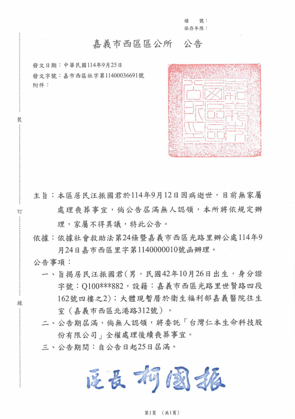 函轉4縣市函發死亡公告4份-100903