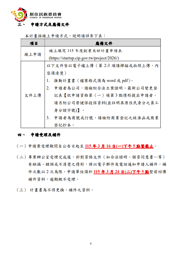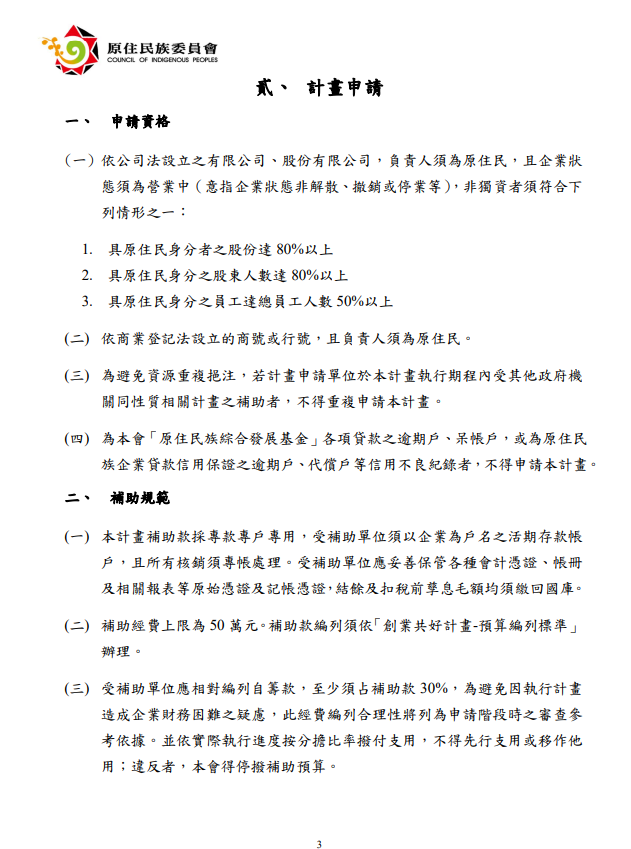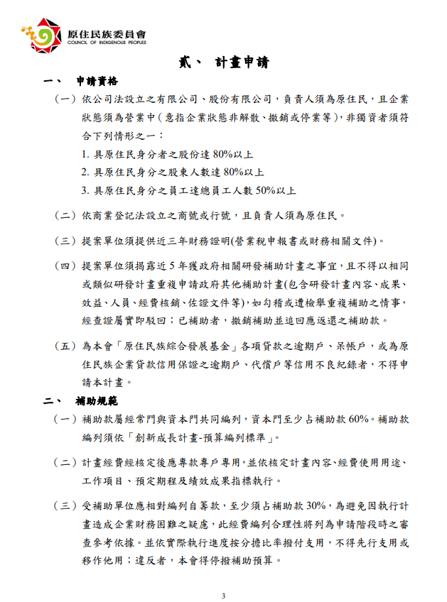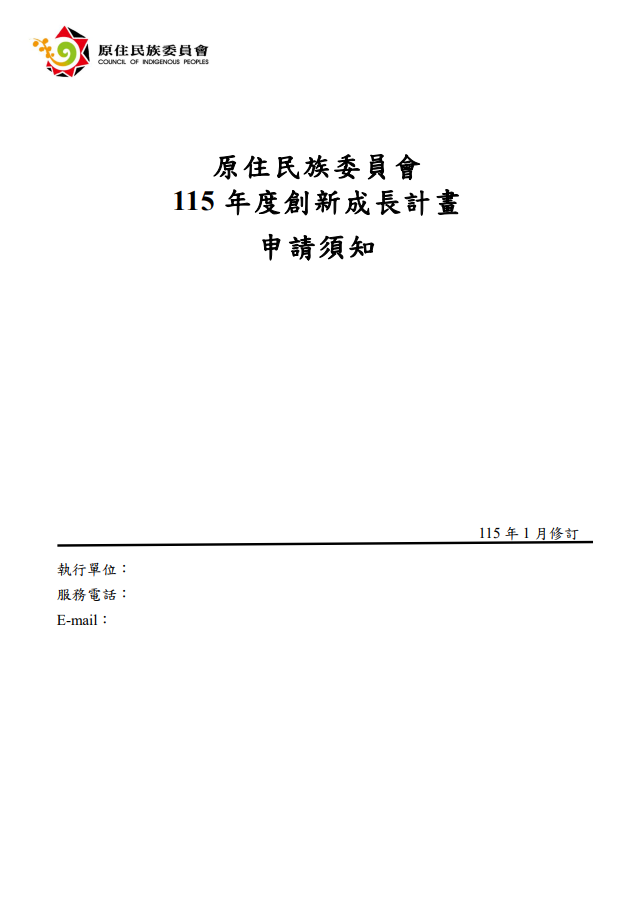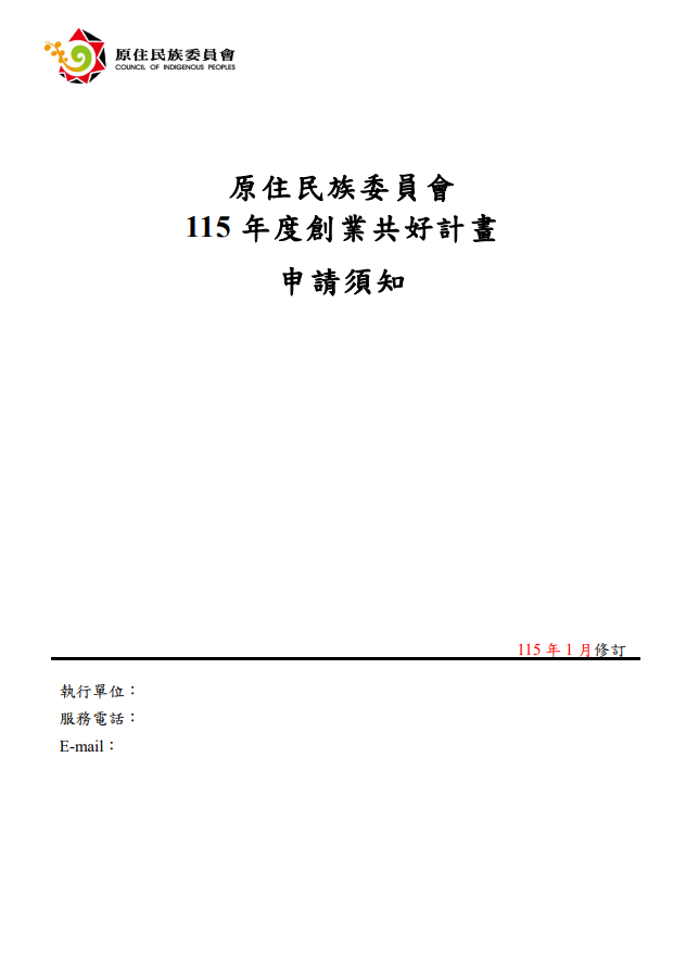 原住民族委員會「115年度原住民族經濟永續發展計畫-創業共好計畫、創新成長計畫」申請須知