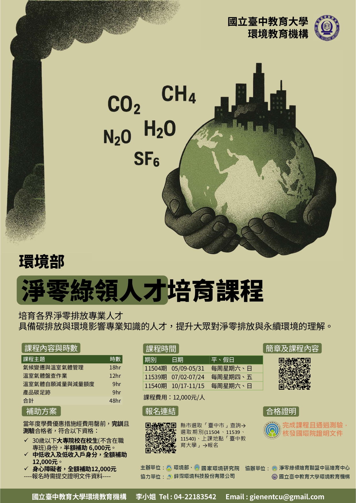 國立臺中教育大學函送辦理115年度「環境部淨零綠領人才課程」資訊
