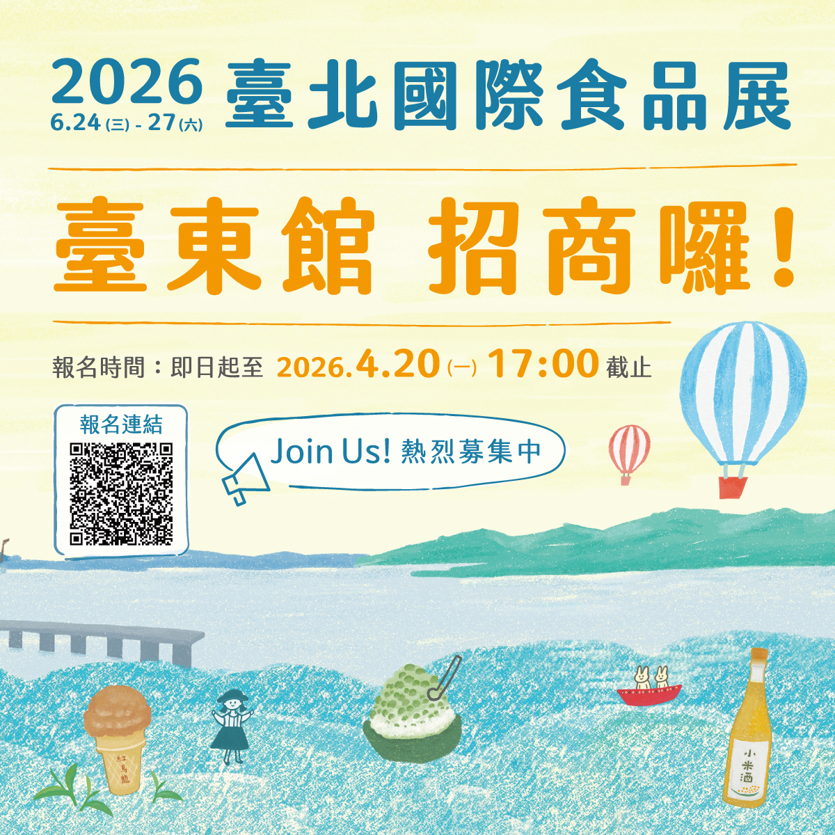 為促進臺東縣經濟產業發展,本府將率團參加「2026年臺北國際食品展」