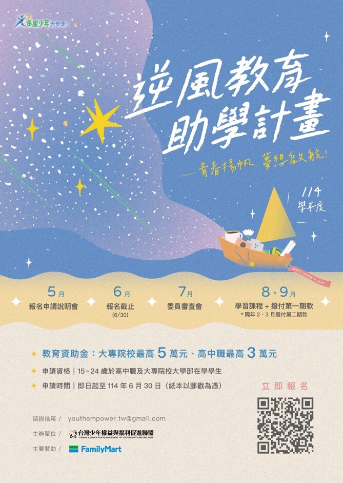 「114學年度逆風少年教育助學計劃」招生