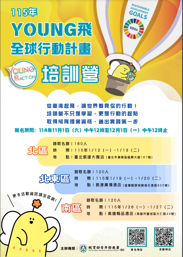• /函轉臺東縣政府教育部青年發展署「115年Young飛全球行動計畫」鼓勵青年踴躍報名參加。