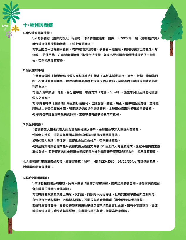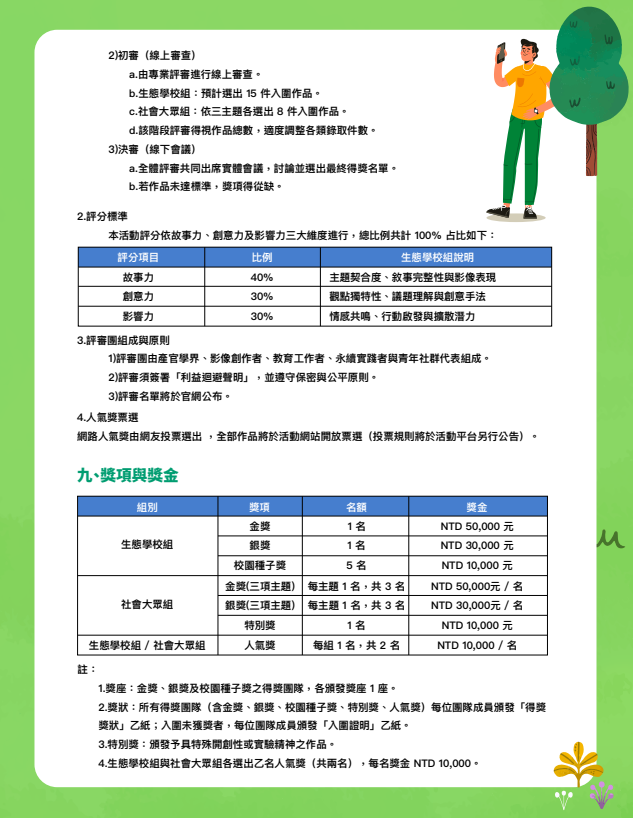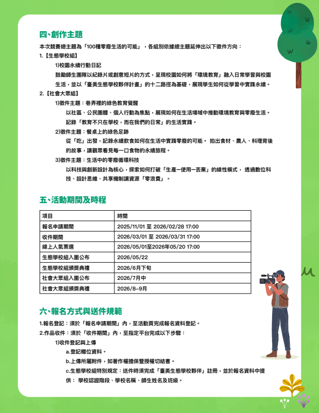 環境部與財團法人彩晶文教基金會共同辦理之第一屆「綠影創作獎」徵件簡章及相關資訊