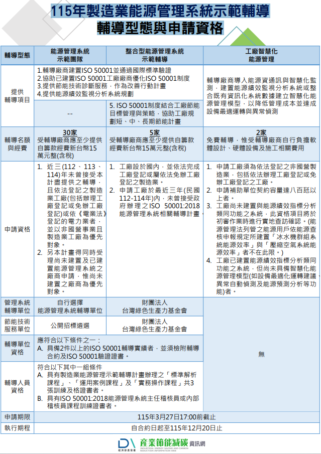 轉知經濟部產業發展署辦理「115年製造業能源管理示範輔導申請須知說明會」