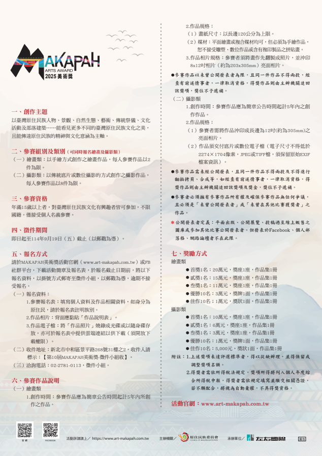 檢送 原住民委員會辦理第10屆MAKAPAH美術獎