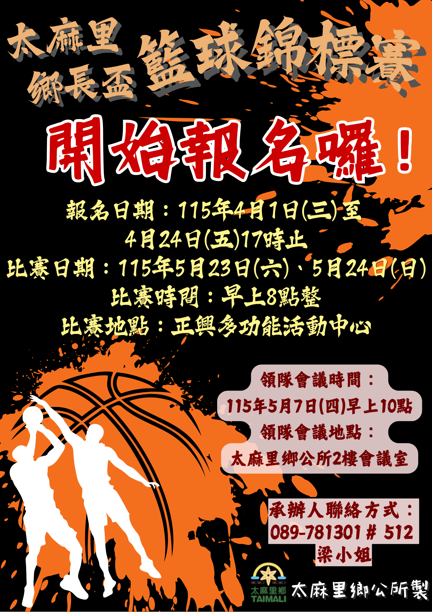【公告】「太麻里鄉115年鄉長盃籃球錦標賽」開始報名囉!