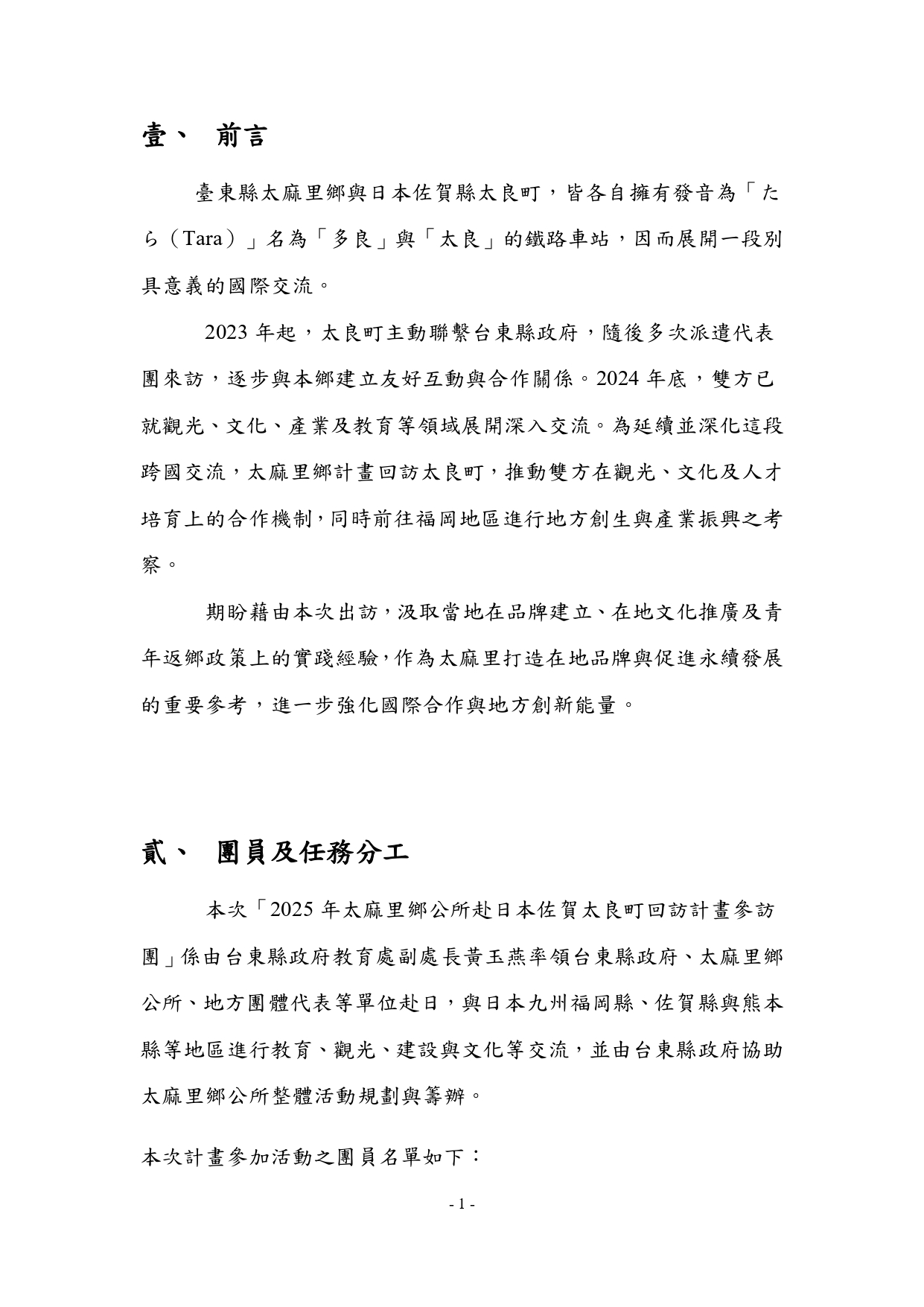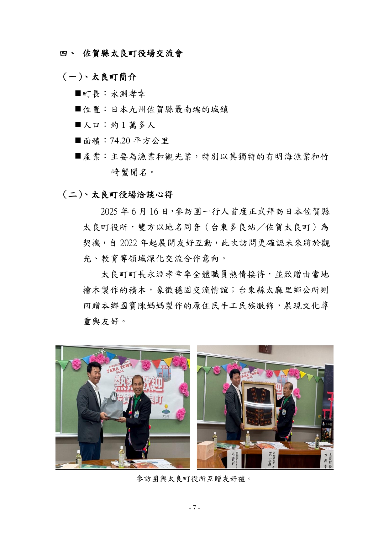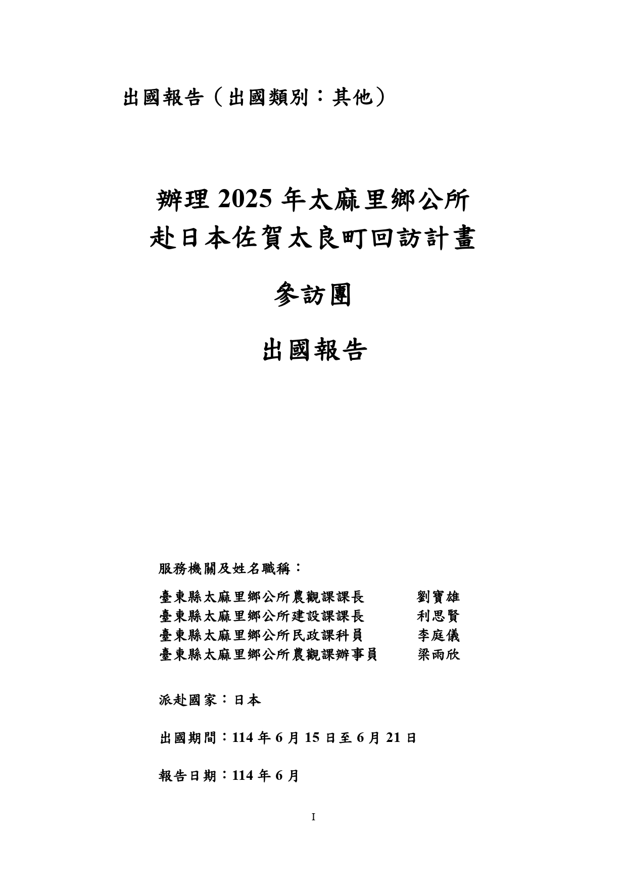 114年 臺東縣太麻里鄉公所 太良町出國報告
