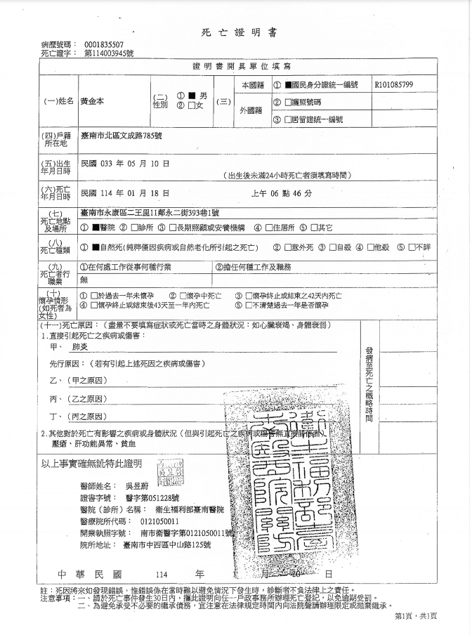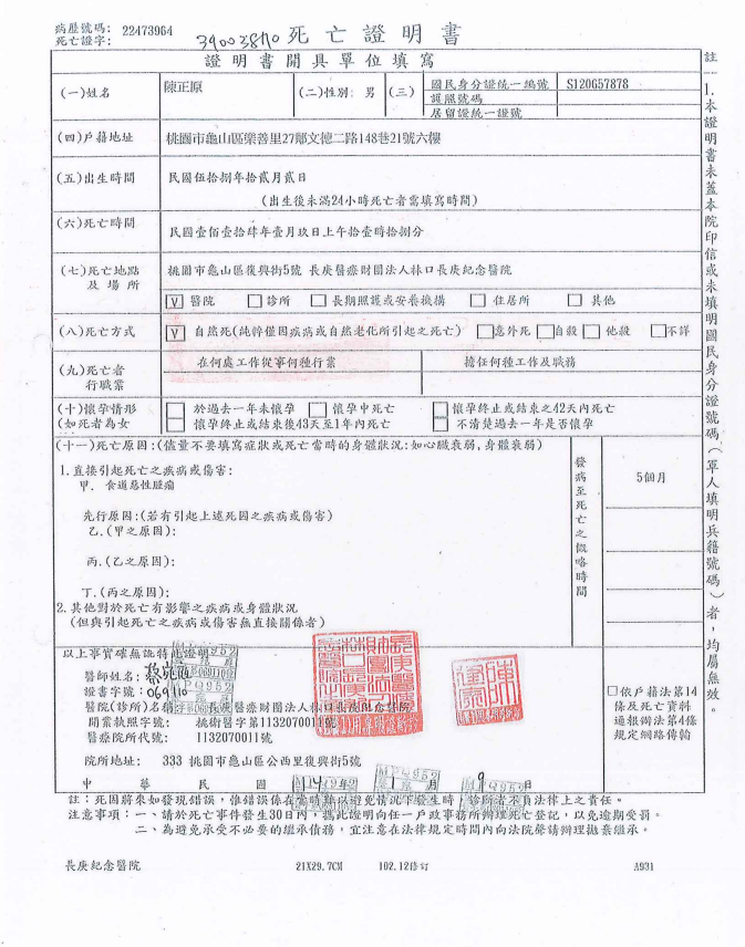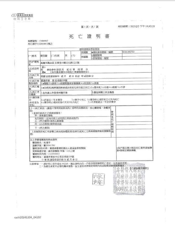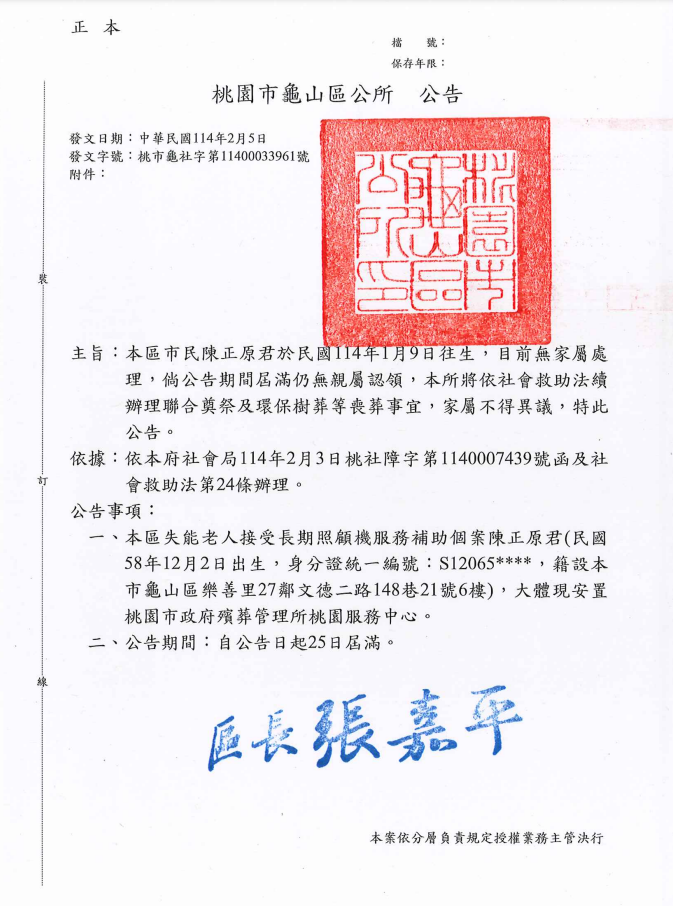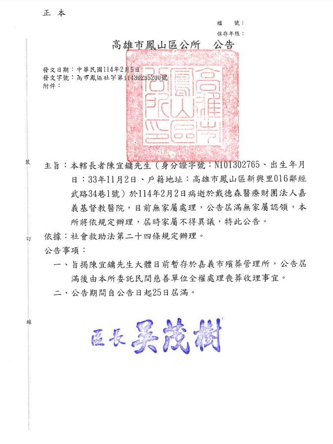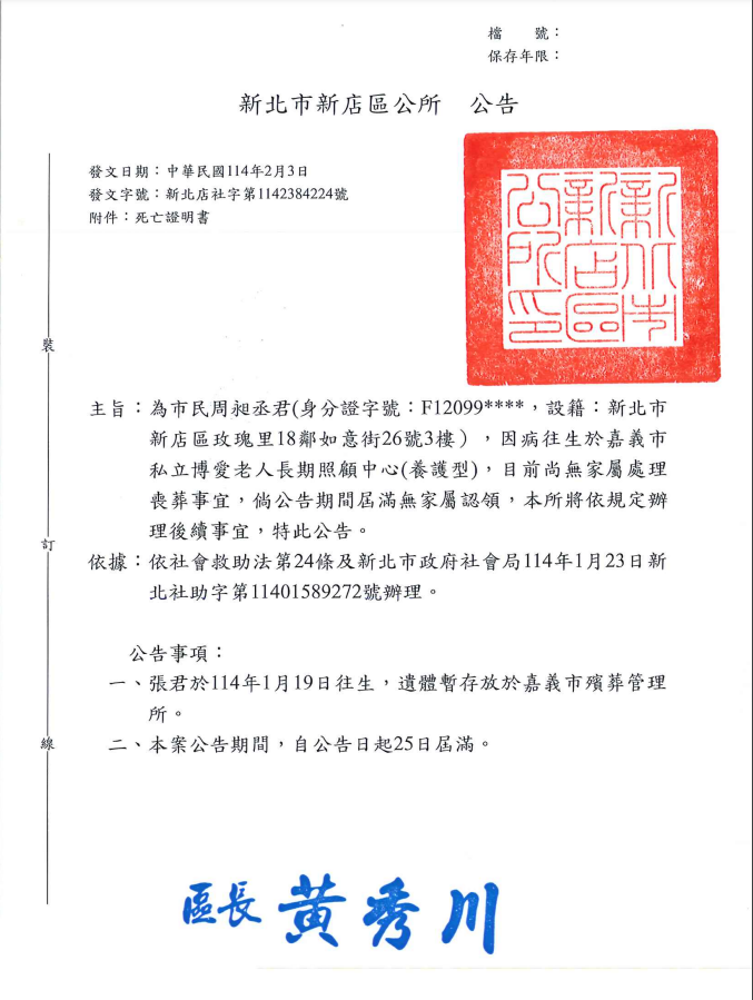 函轉2縣市函發死亡公告4份-250212