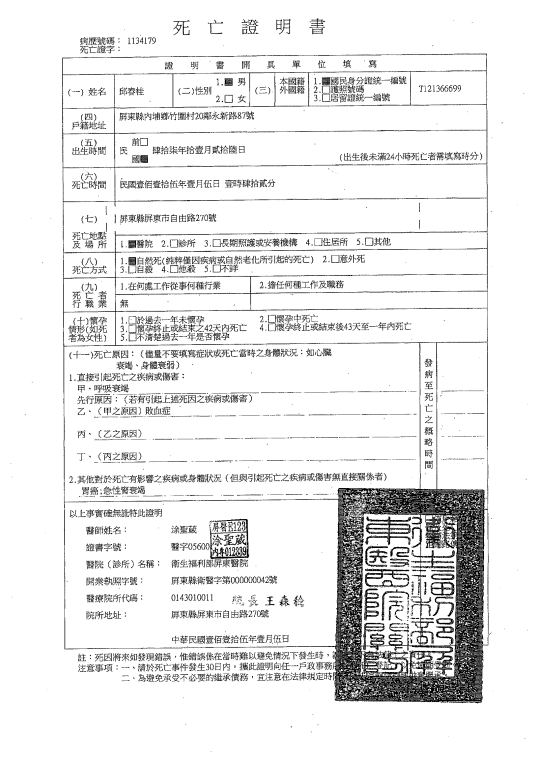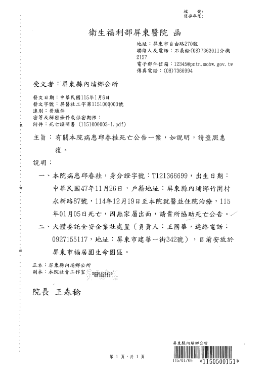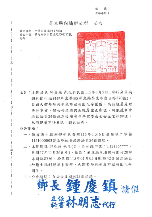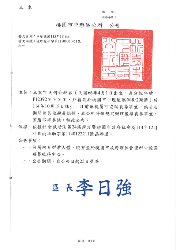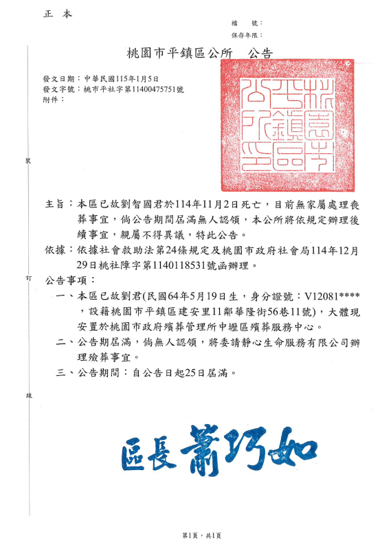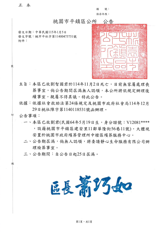 函轉3縣市函發死亡公告4份-26.01.13-3