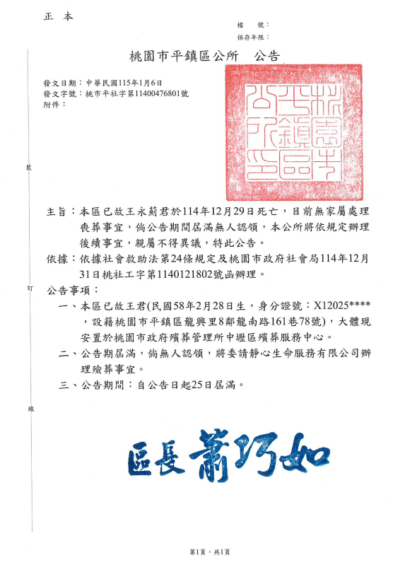 函轉4縣市函發死亡公告4份-26.01.13-4