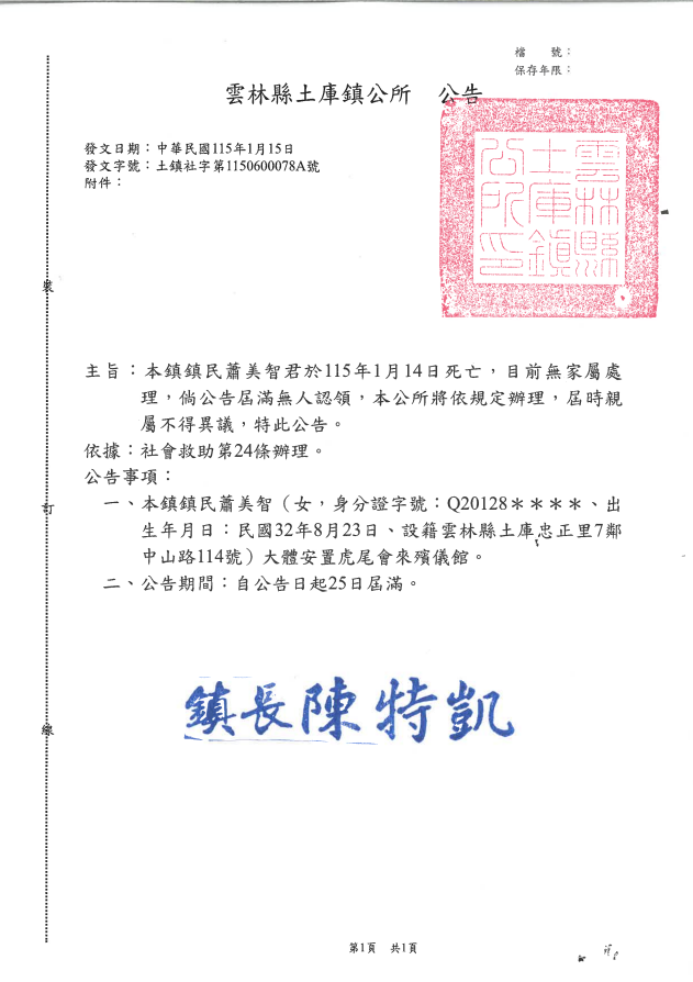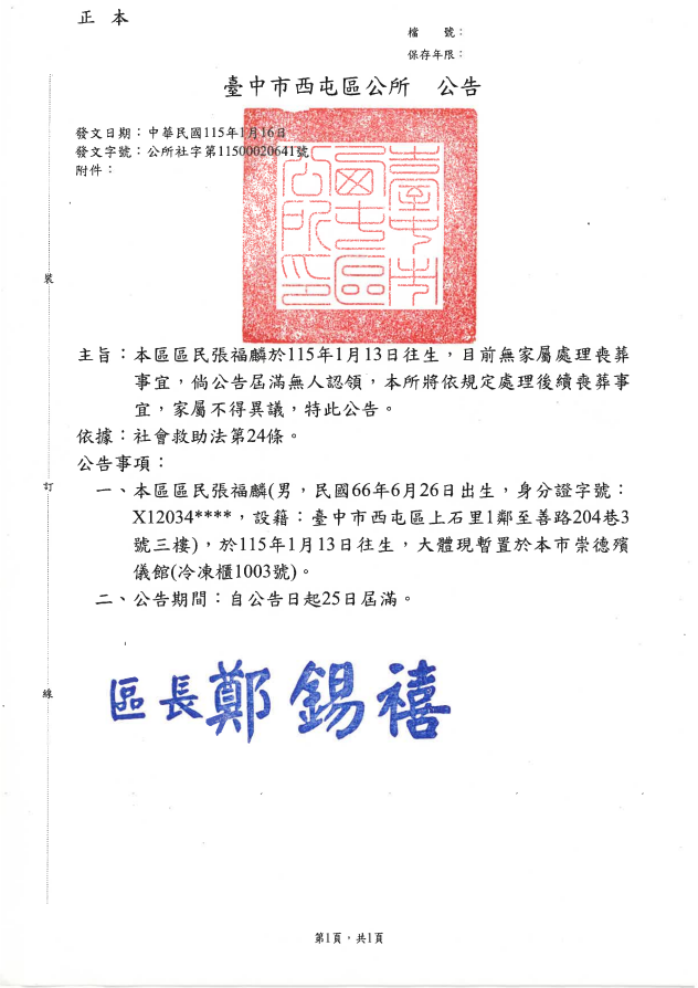 函轉4縣市函發死亡公告4份-26.01.21-2