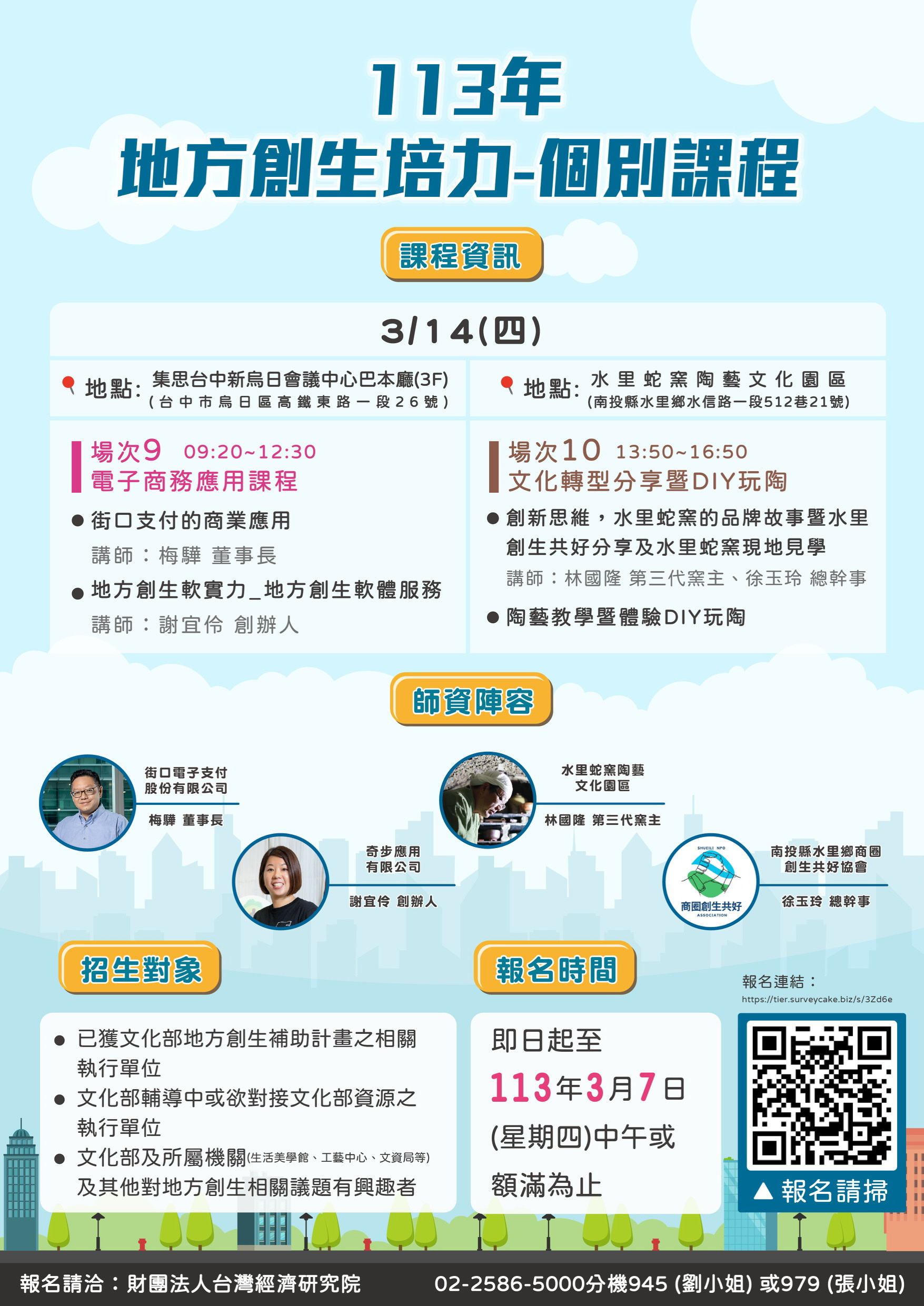 三、報名時間:自即日起至113年3月7日(星期四)中午止,請至https://tier.surveycake.biz/s/3Zd6e線上報名。