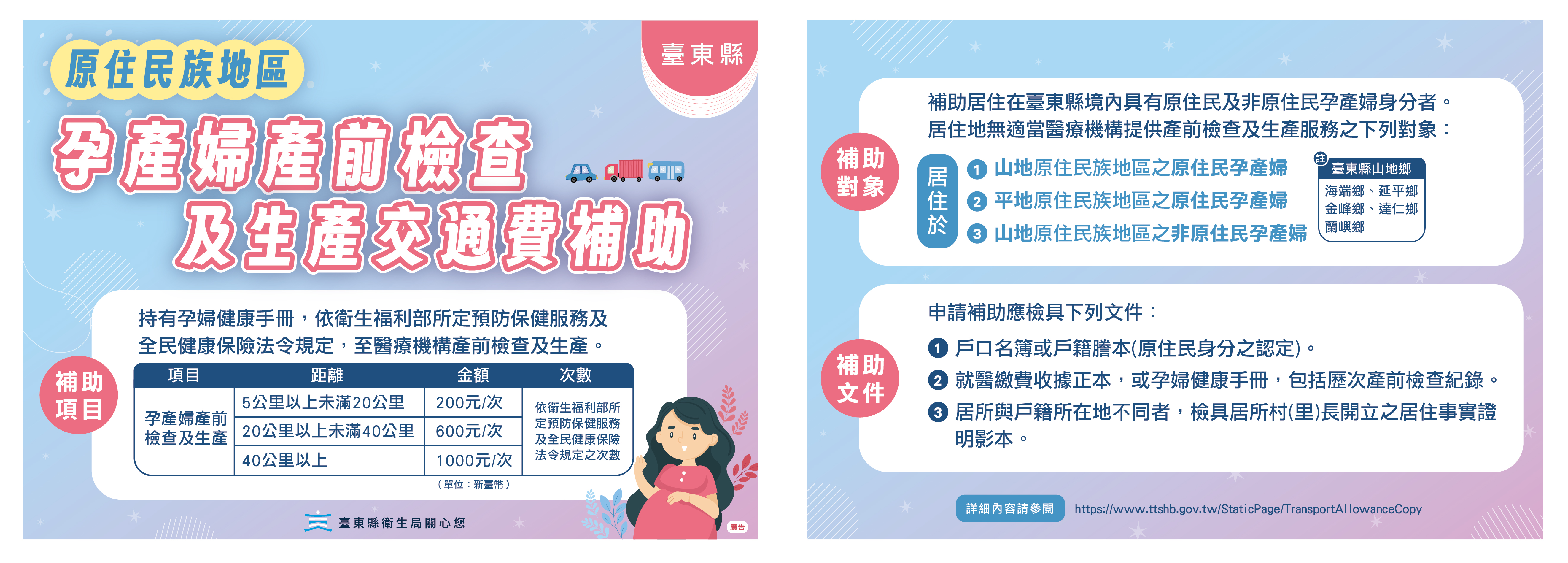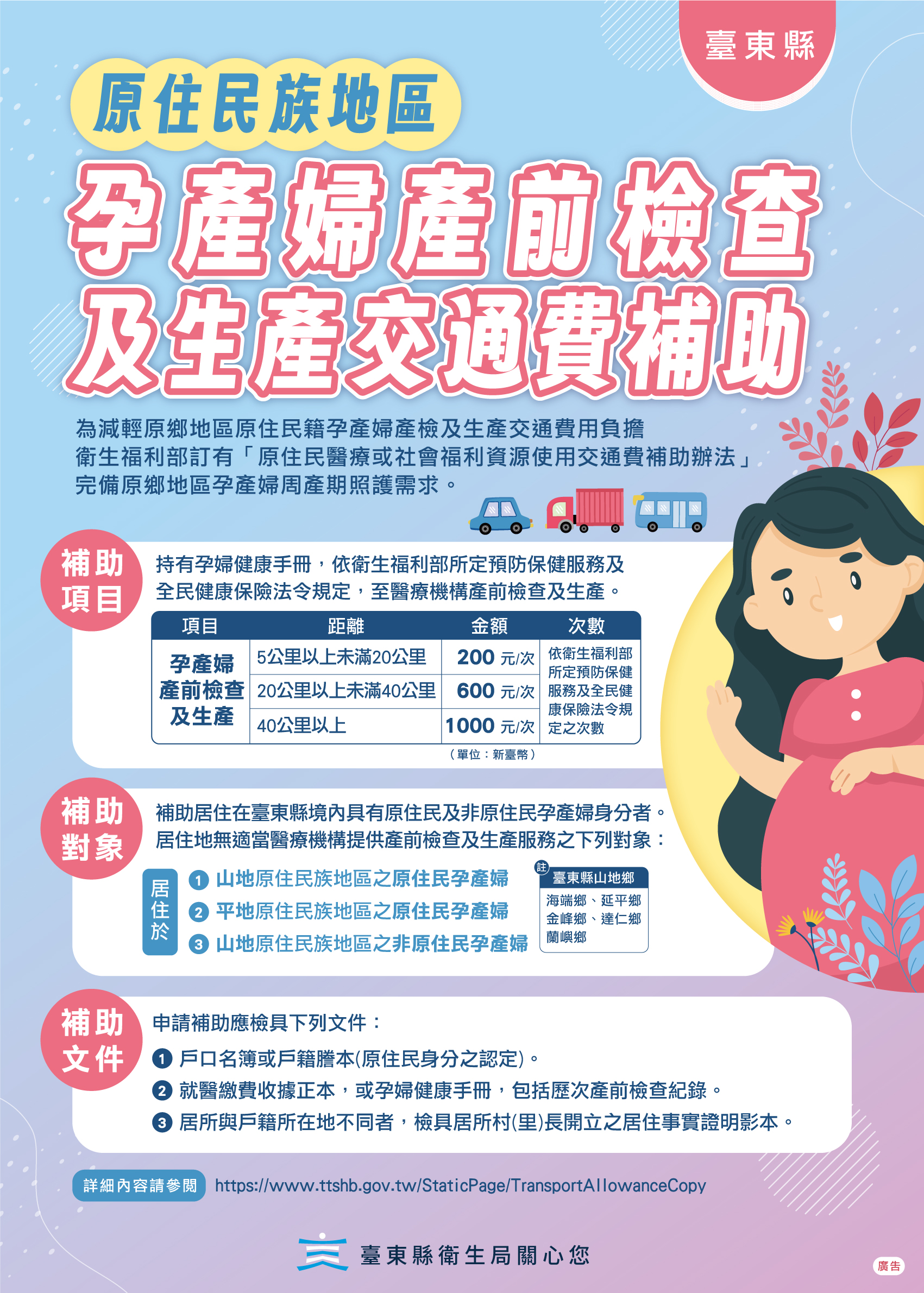 轉知臺東縣衛生局「原住民地區孕產婦產前檢查及生產交通費補助計畫」 Attachments: 376540300I_1140037013_ATTACH1.jpg[ ]2080 kB 376540300I_1140037013_ATTACH2.jpg[ ]1197 kB 376540300I_1140037013_ATTACH3.jpg[ ]3208 kB 上一篇 下一篇