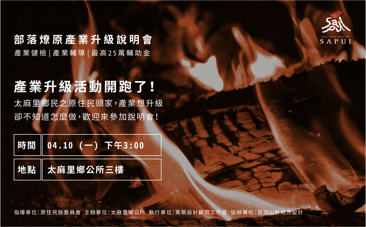 【「Sapui部落燎原計畫」原民產業升級補助計畫】即將開跑!