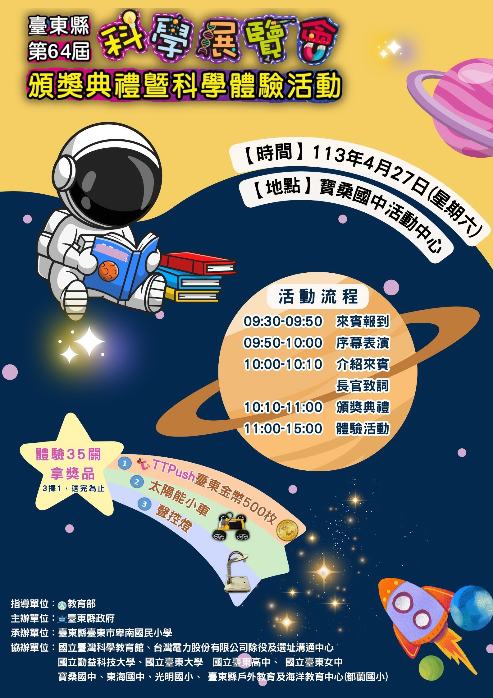 113年4月27日(星期六)假寶桑國中活動中心辦理「112學年度中小學科展頒獎暨科學體驗」活動 Attachments: 113年4月27日(星期六)假寶桑國中活動中心辦理「112學年度中小學科展頒獎暨科學體驗」活動-海報.jpg[ ]714 kB 上一篇 下一篇