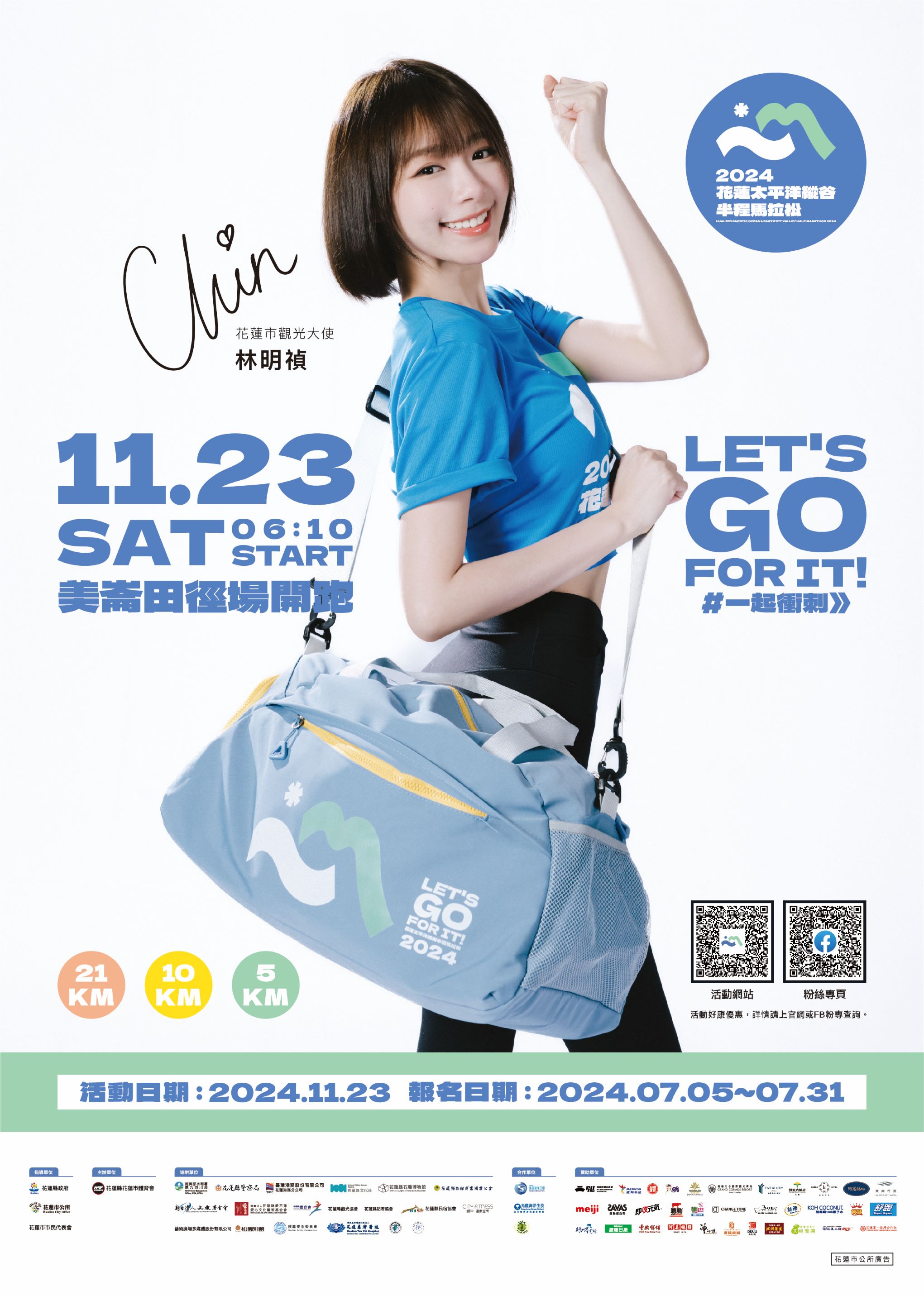 【轉知】花蓮縣花蓮市公所「2024花蓮太平洋縱谷半程馬拉松」活動 「2024花蓮太平洋縱谷半程馬拉松」活動 報名日期:自113年7月5日至113年7月31日止,採網路報名額滿即止。 活動會場:花蓮縣美崙田徑場集合出發。 活動日期:113年11月23日(六)上午6:10開跑 本活動目的為透過運動休閒結合觀光,帶動整體觀光產業發展,活動訊息請逕上官網https://www.pacific-valley-marathon.com/查詢 Attachments: 海報[ ]497 kB 上一篇 下一篇