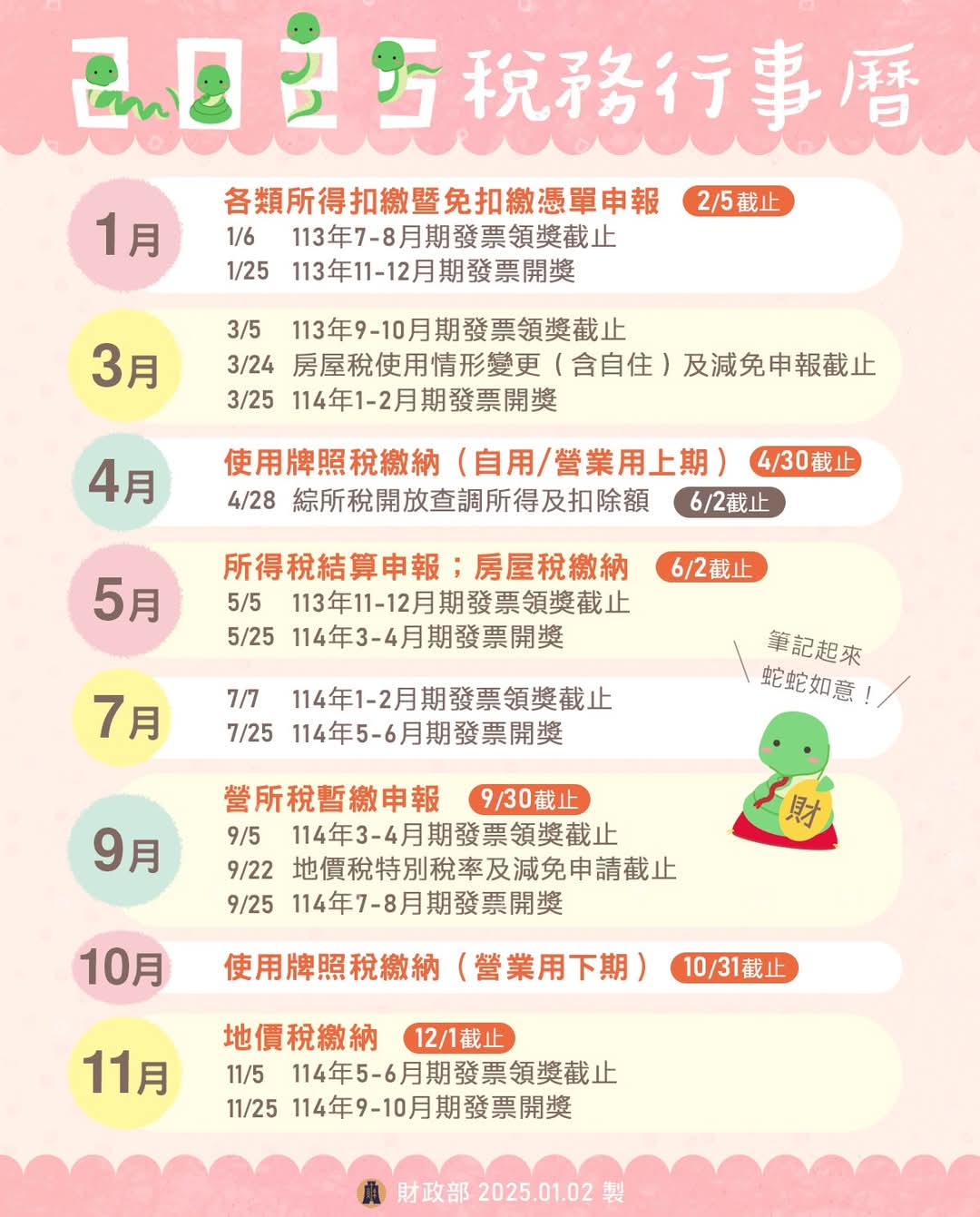 114年度稅務行事曆及稅務新制