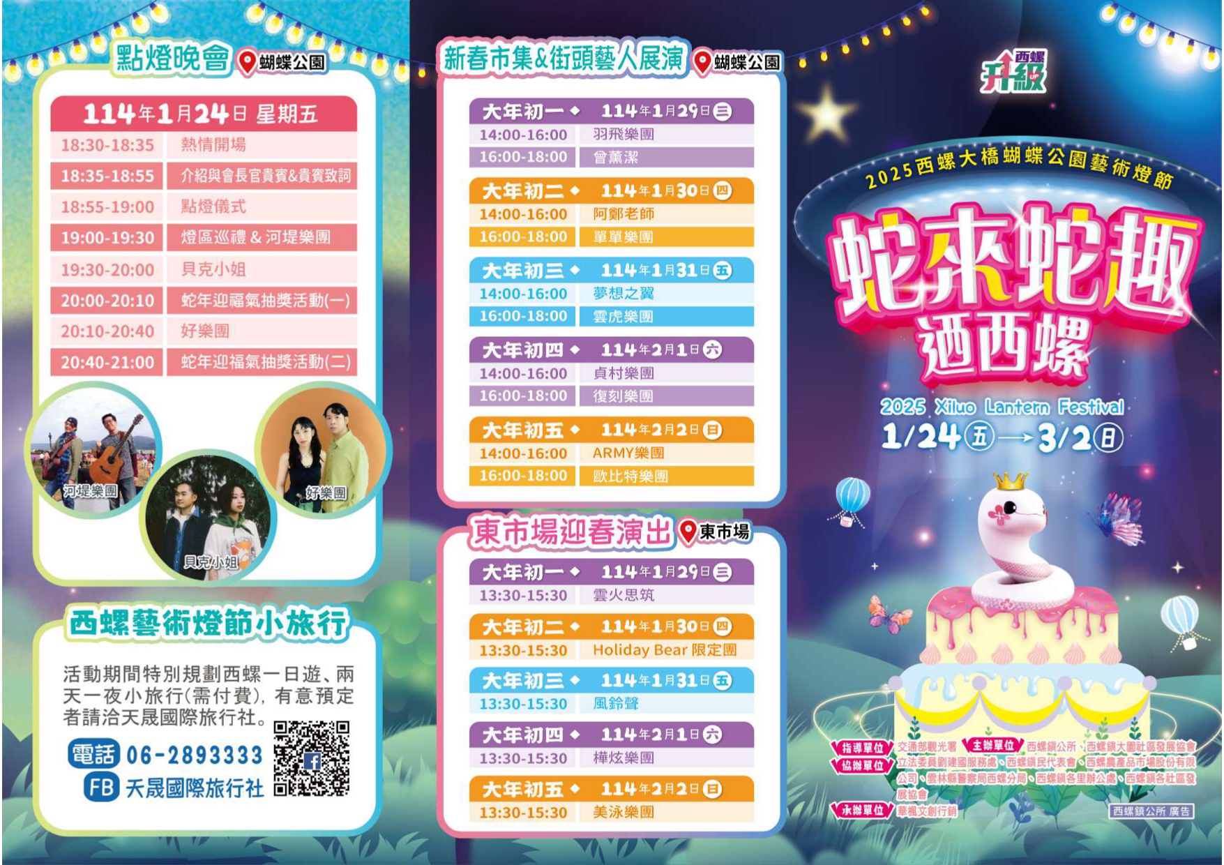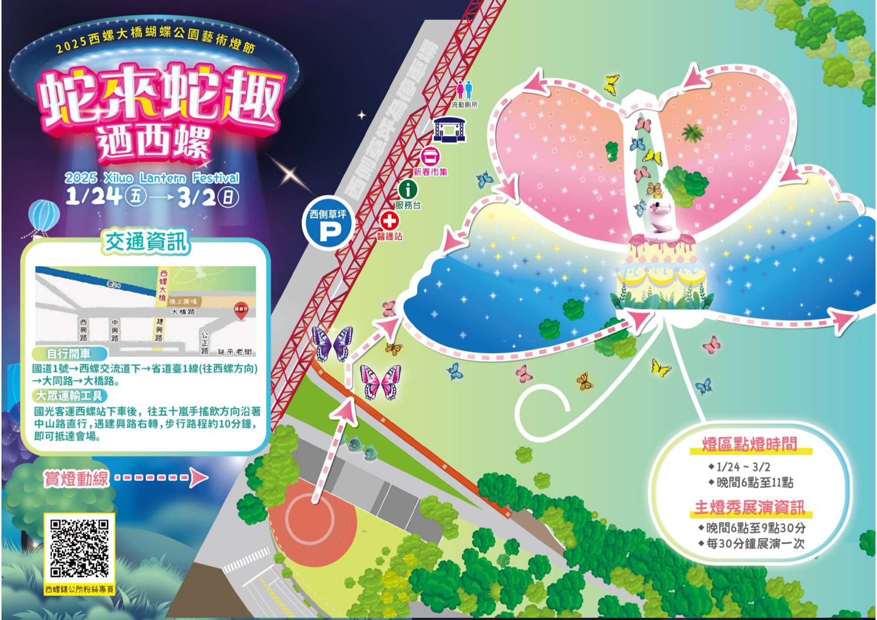 檢送本所辦理「2025西螺大橋蝴蝶公園藝術燈節」活動宣傳文宣電子檔,惠請貴單位協助於官方網站及臉書粉絲專頁等公告宣傳,亦請鼓勵所屬同仁及民眾踴躍參加,至紉公誼。 |
