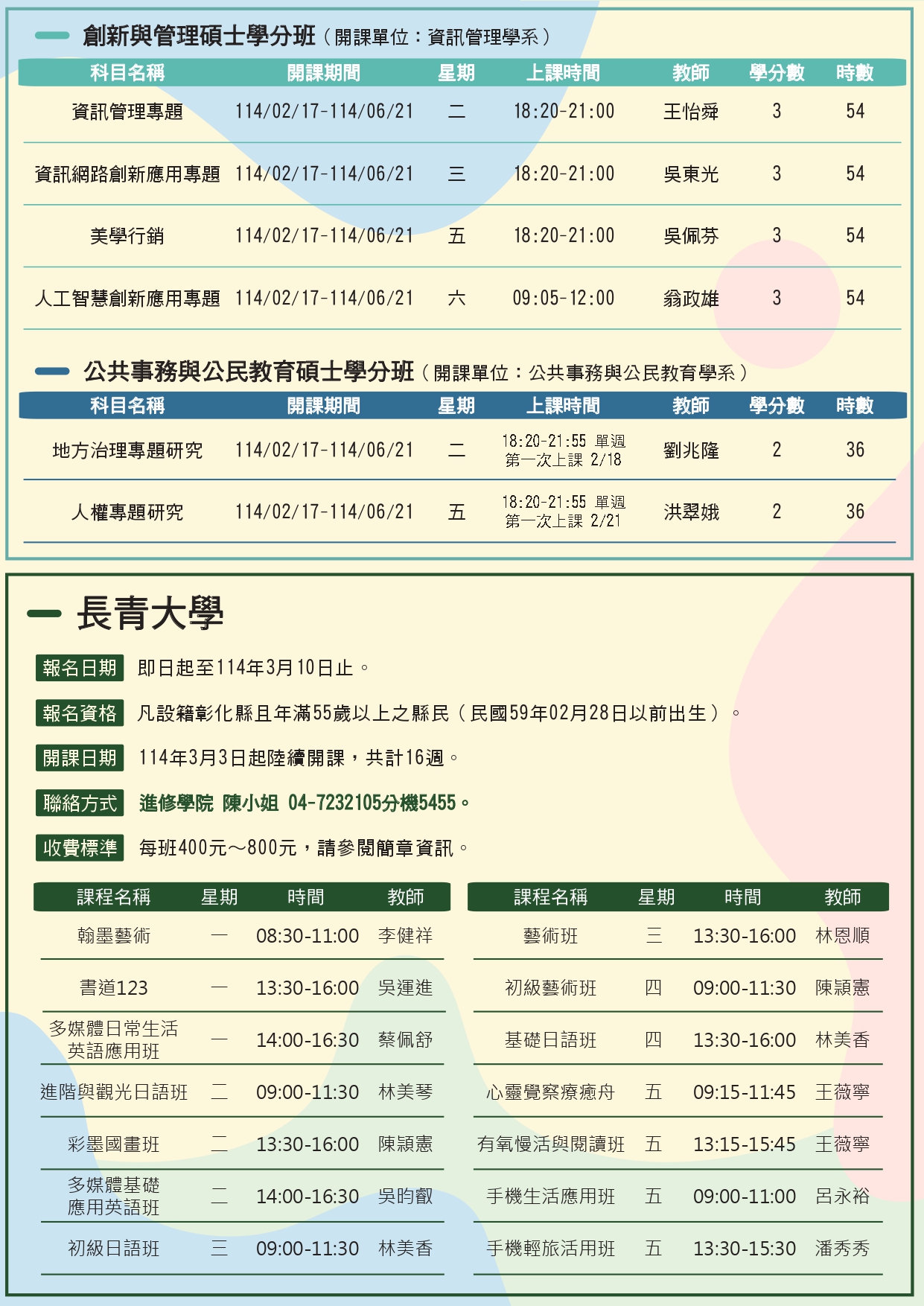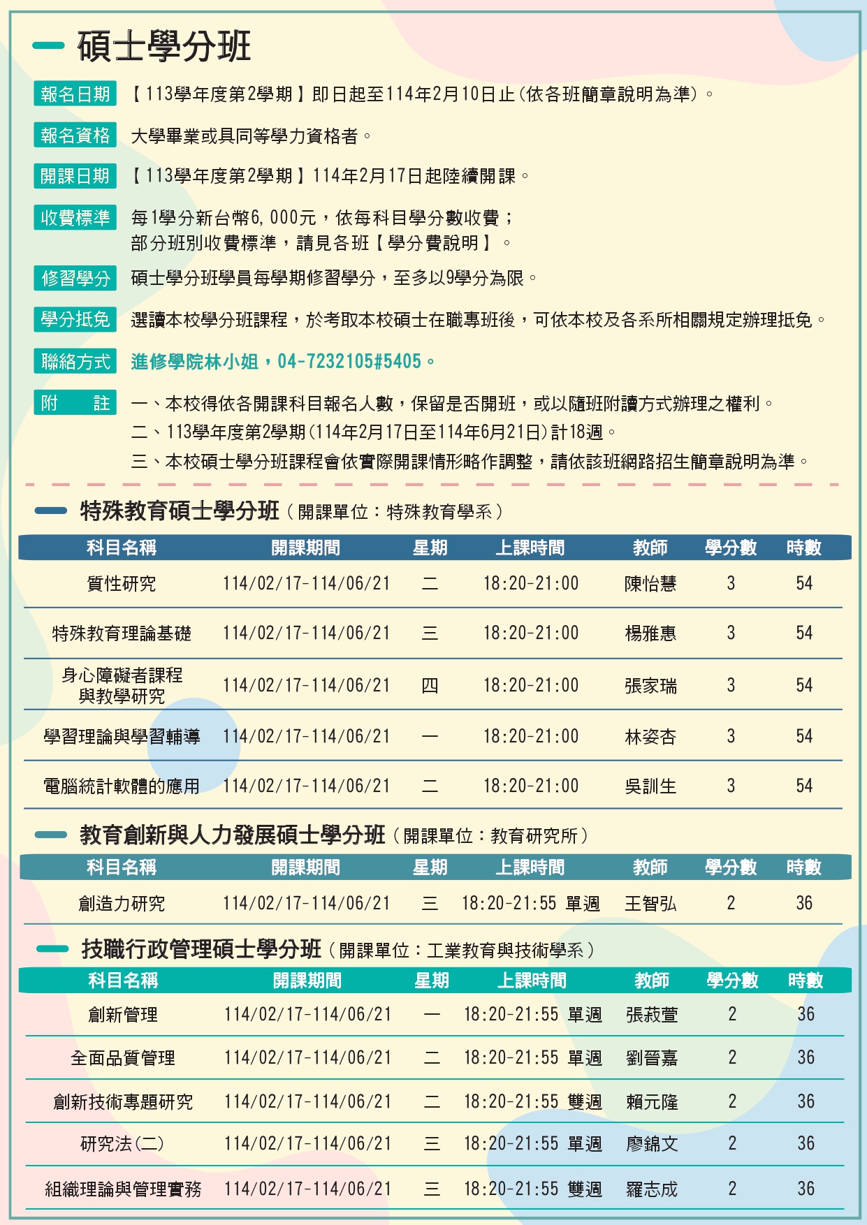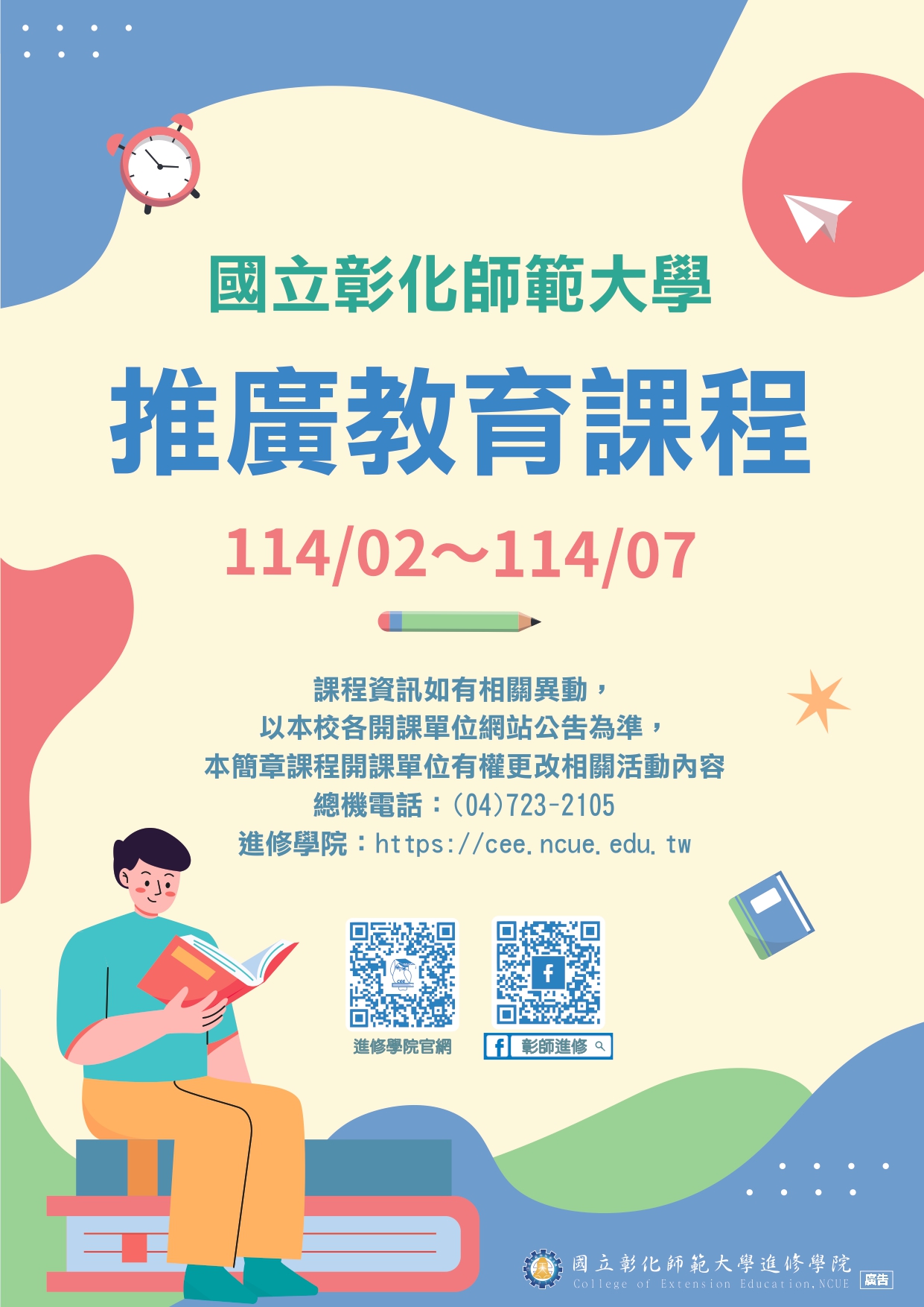 [ 轉知 ] 國立彰化師範大學「114年2月-7月推廣教育課程」招生簡章