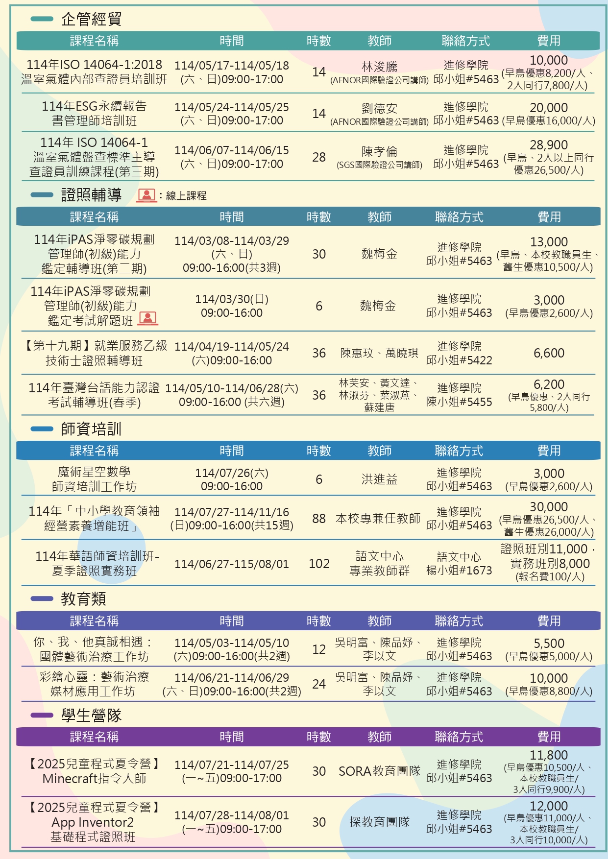 國立彰化師範大學「114年2月-7月推廣教育課程」招生簡章