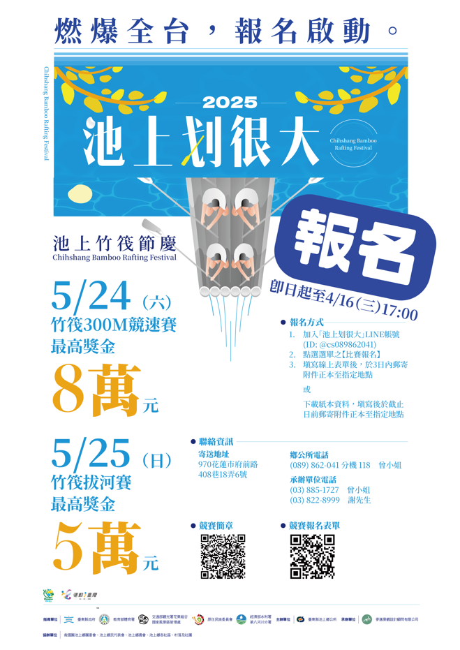 [ 檢送 ] 本所辦理「2025悠活池上-米鄉竹筏季系列活動『竹筏節慶嘉年華-水上竹筏競賽』」