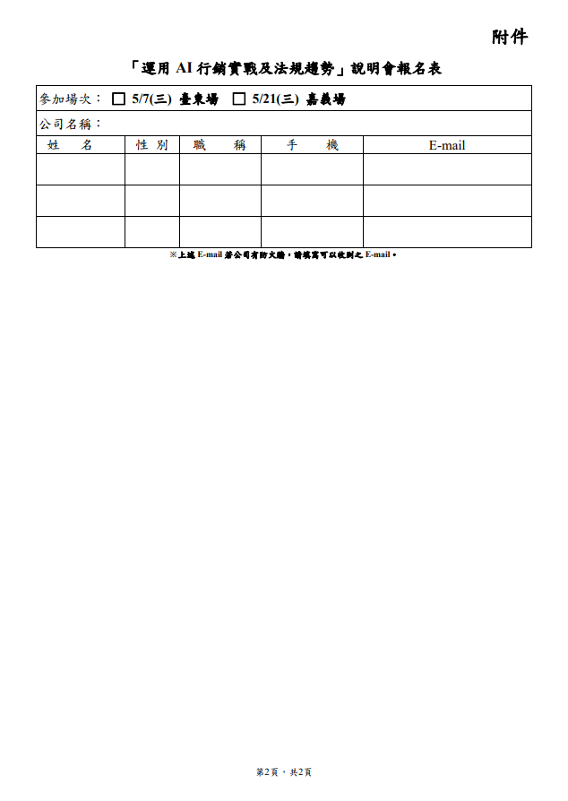 [函轉] 經濟部國際貿易署於114年5月間在臺東及嘉義各辦理1場「運用AI行銷實戰及法規趨勢」說明會