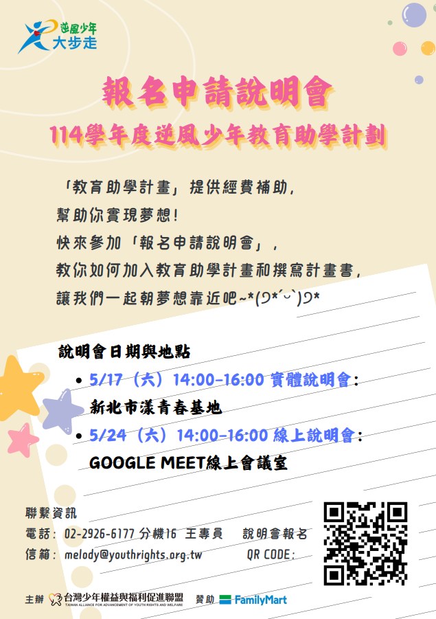 「114學年度逆風少年教育助學計劃」招生