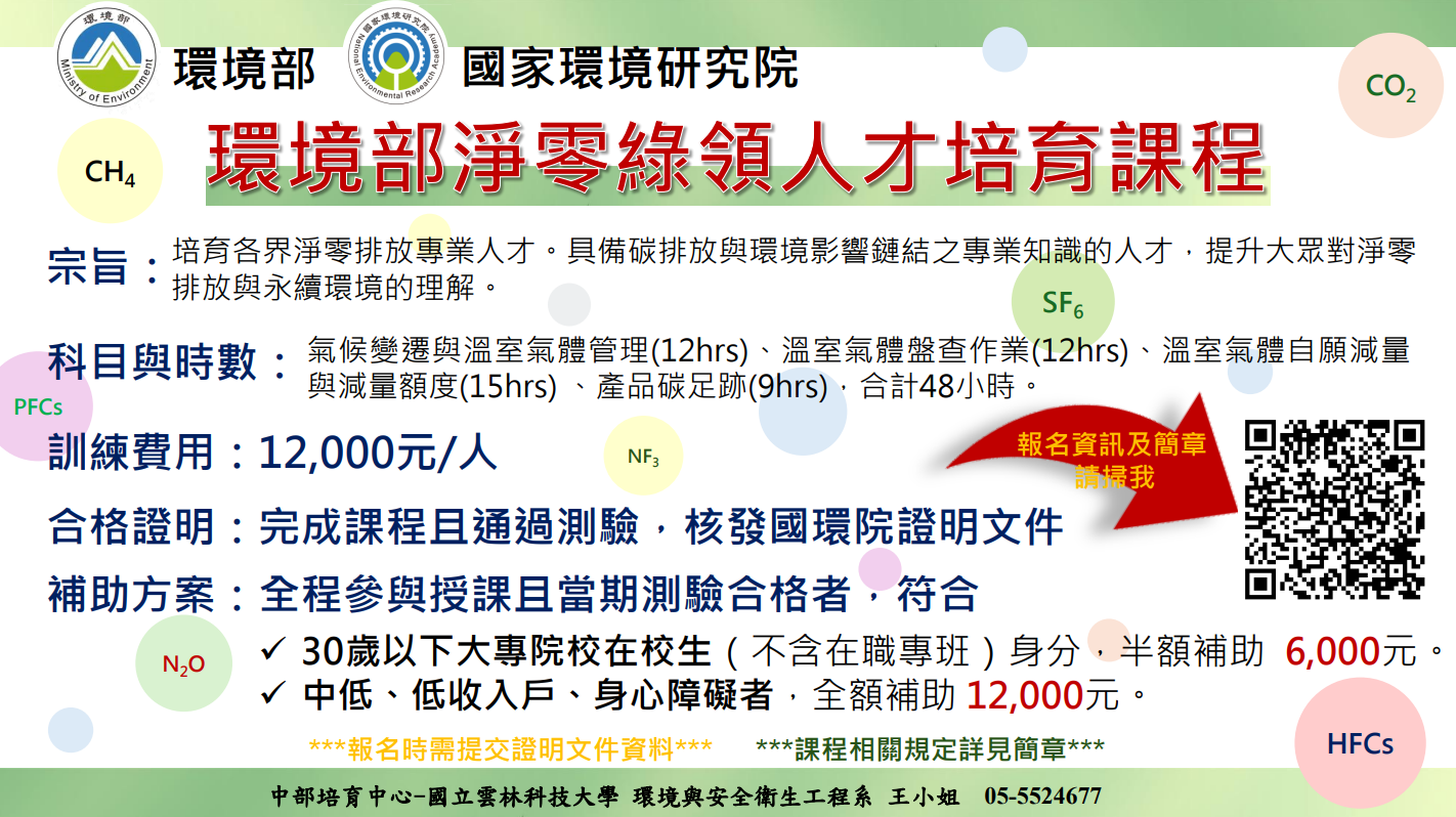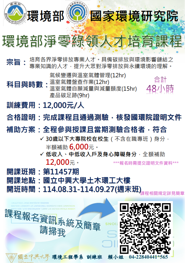 • /轉知國立中興大學辦理「環境部淨零綠領人才課程」