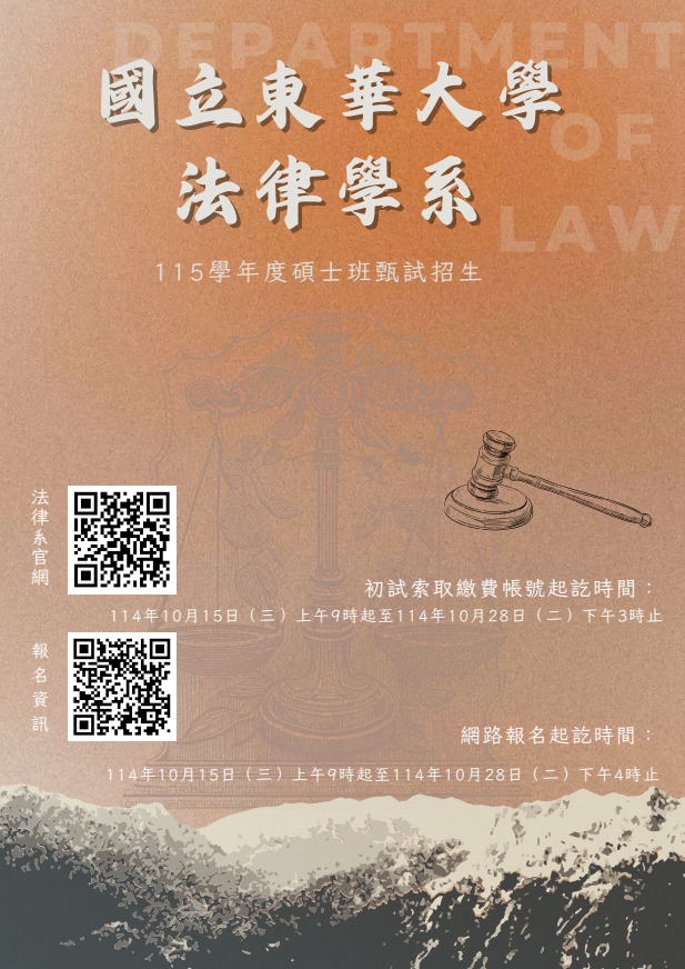 • /檢送 國立東華大學115學年度法律學系碩士班甄試招生