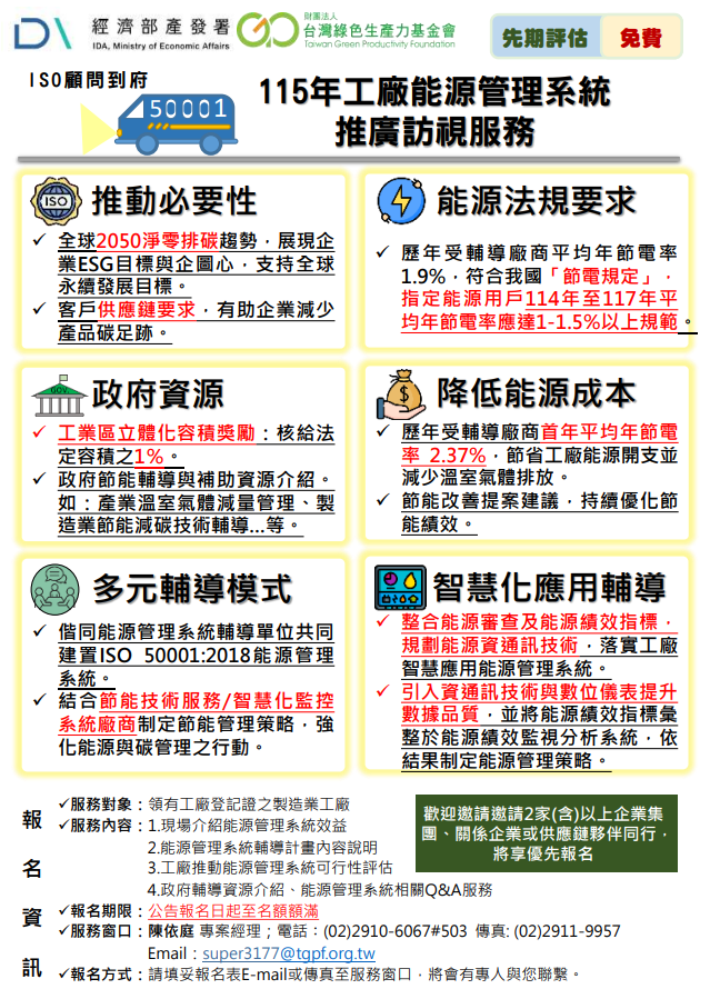 轉知經濟部產業發展署辦理「115年製造業能源管理示範輔導申請須知說明會」