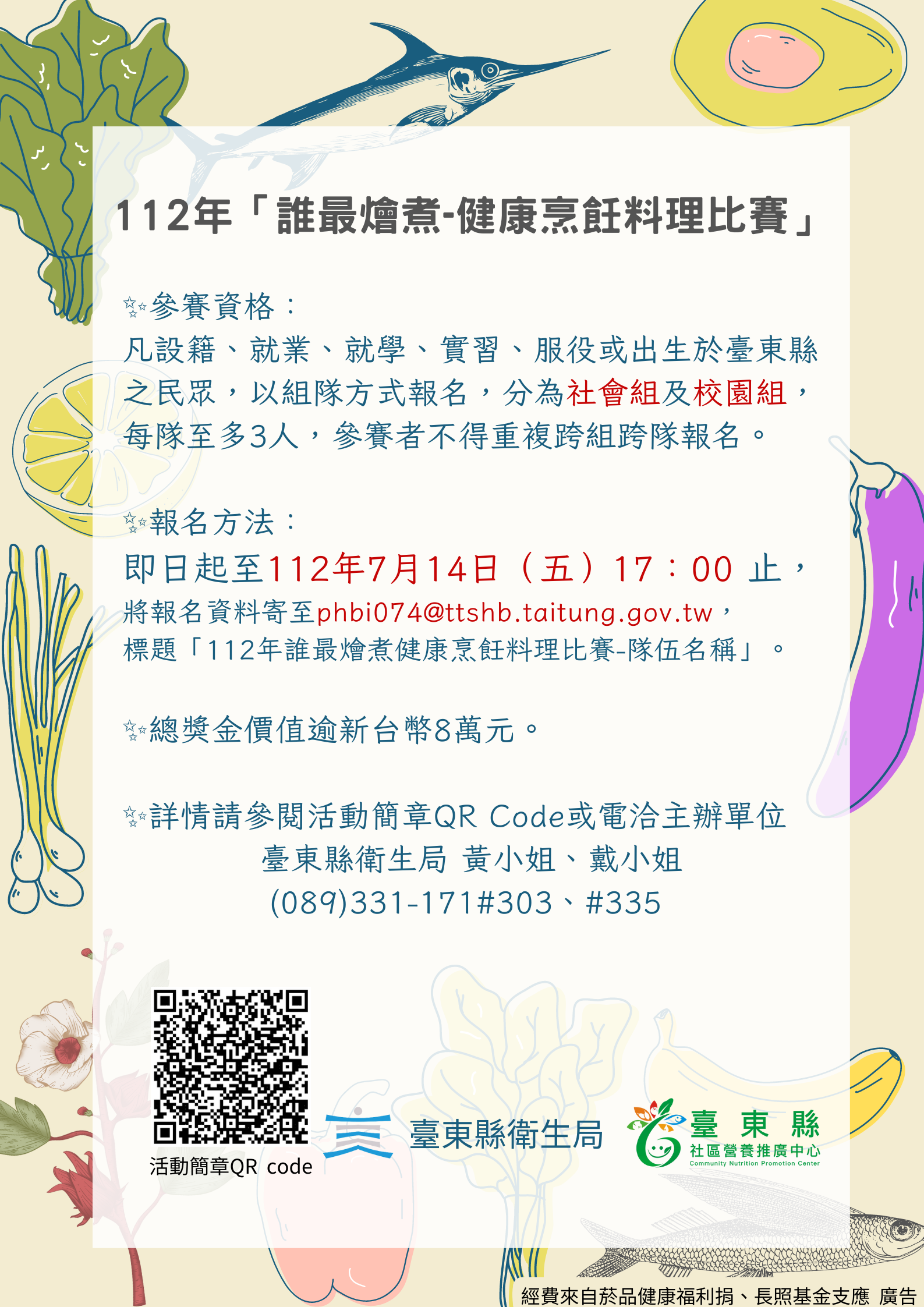 (轉知)臺東縣衛生局辦理「112年誰最燴煮-健康烹飪料理比賽」活動。